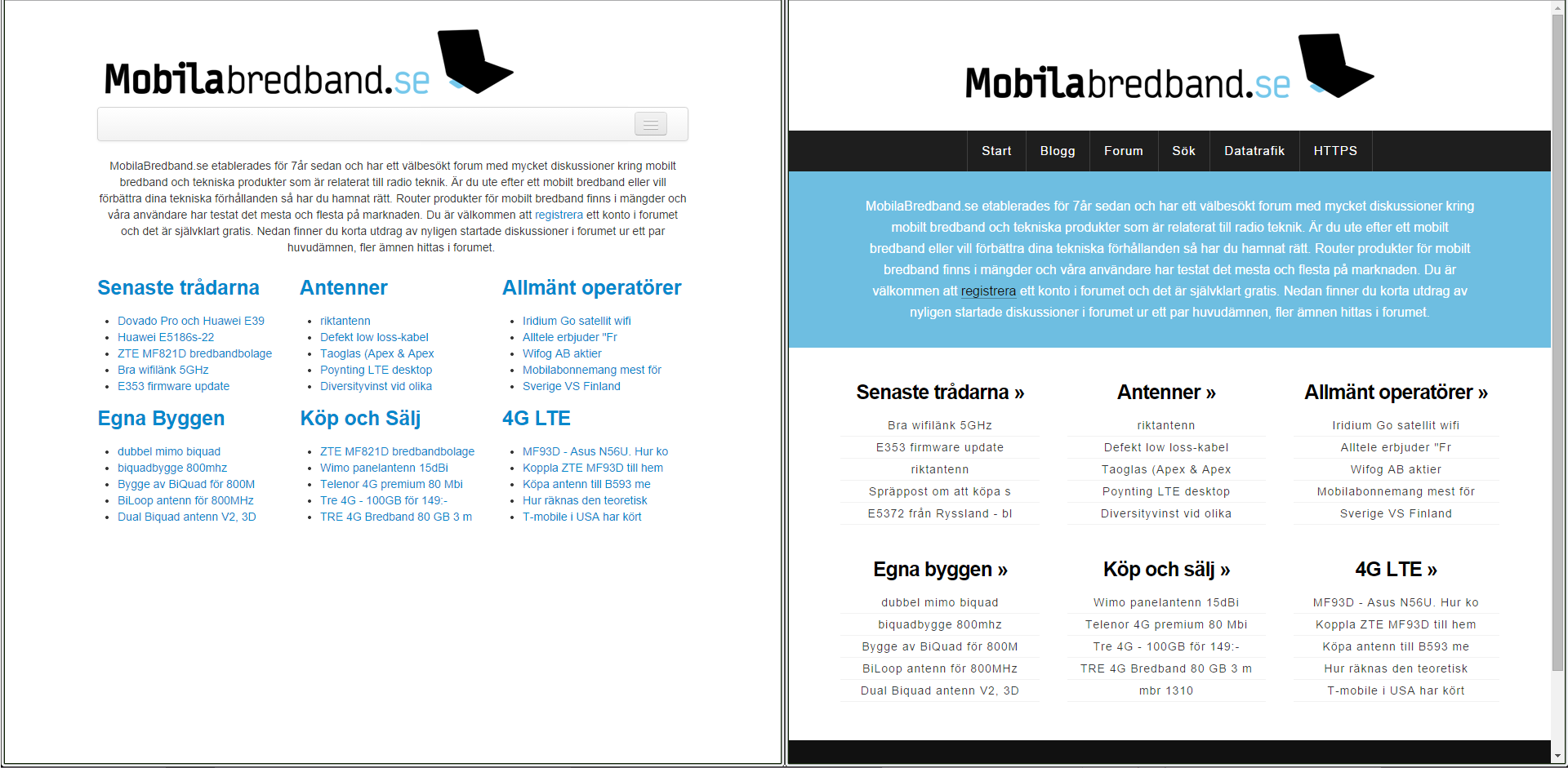 Jag vill dock tro att man på Gaffa-designen faktiskt lättare får en överblick av vad som publicerats på sidan sedan man sist besökte den - just pga fokus på de lite större bilderna som man känner igen snabbare än en mindre rubrik. Exempelvis "Senaste nytt" i Gaffas högerspalt tyckte jag var väldigt intetsägande då det är rubriker på fyra ord utan varken bild eller inledande ingress. På Mjällby-designen såg jag inte heller det som ett problem då jag utgick från hur pass frekvent de publicerade texter i dag (vilket var väldigt sällan). Är det en sida som uppdaterar lika frekvent som t.ex. Aftonbladet hade man utan tvekan fått tänka annorlunda. Det är så jag har resonerat sen är det absolut möjligt att jag inte tänkt rätt!