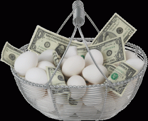 Lägg inte alla dina ägg och pengar i samma korg låter som en bra beskrivning av bilden.